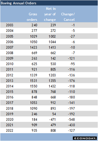 Boeing announced 250 new orders for commercial aircraft in December after no orders being booked in November. The hefty increase ends 2022 with a flourish with gross new orders of 935, somewhat better than the gross new orders of 909 in 2021. However, when looking at net new orders, 2022 totaled 808, far better than the 470 in 2021 and the highest since 893 in 2018.