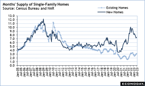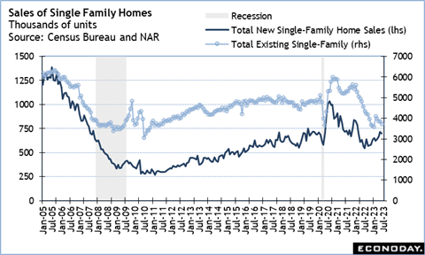 The economic data may feel a bit out of date. In particular, the June numbers on sales of existing homes at 10:00 ET on Tuesday and new single-family homes at 10:00 ET on Wednesday will not have caught up with the more recent jump in mortgage rates. Nevertheless, sales of existing homes should continue to reflect the squeeze that limited supplies of homes available for sale have put on that side of the housing market. Sales of existing homes are closings of contracts taken out a month or more before July. Some of the sales activity will be due to potential homebuyers who managed to pre-qualify for a mortgage at a lower rate in May or June who were lucky enough to find a suitable home to purchase.