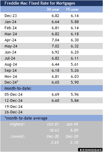 Second, is whether the NAHB/Wells Fargo housing market index shows further firming in early December after a 3-point rise to 46 in November when it is released at 10:00 ET on Tuesday. Recent declines in mortgage rates suggest that buyers will return to the market in hopes of better affordability while inventories are more plentiful, and they have more power to negotiate on prices and terms.