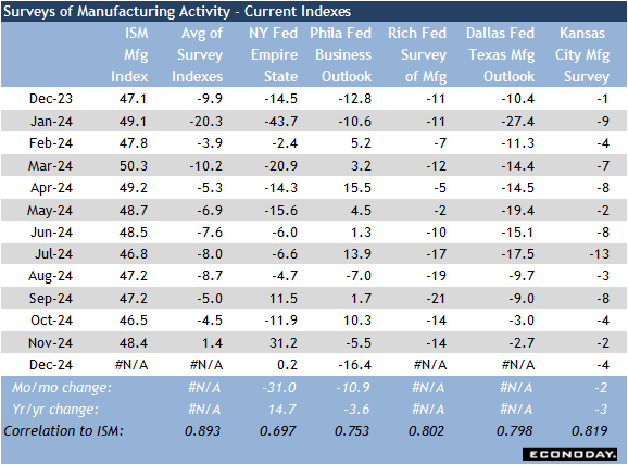 With Christmas, Hanukkah, and other holiday observances dominating the calendar for the next two weeks, there is very little on the US economic data schedule that will demand attention. Most of the numbers will put the final touches on perceptions of economic conditions as the fourth quarter 2024 draws to a close. Most notable will be the remaining numbers related to the housing market in November and conditions in manufacturing in December.