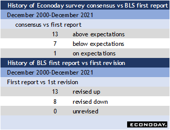 Payroll forecasts for December have a tendency to come in above consensus estimates, and also lean toward being revised up in the subsequent report.