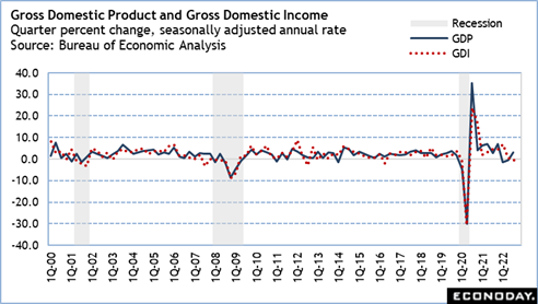 The report that is most anticipated is the advance estimate of fourth quarter GDP at 8:30 EST on Thursday. The Atlanta Fed’s GDPNow looks for an increase of 3.5 percent in the final quarter of 2022, similar to the 3.2 percent rise in the third quarter. While this makes the second half of 2022 one of solid growth, indications are that first-quarter 2023 is going to reflect subpar activity, at best.