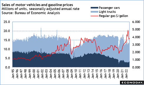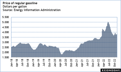 Outside of spending at brick-and-mortar stores, the report will see the influence of changes in gas prices and sales of motor vehicles. Regular gasoline prices averaged around $3.82 per gallon in October, up from $3.70 in September. Higher gasoline prices mean cutbacks in household budgets for other items. Along with higher food prices, this could depress overall sales.