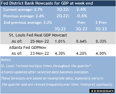 For the moment, at least, the outlook for growth in the fourth quarter looks similar to that in the third quarter. On Wednesday at 8:30 ET the second estimate of third-quarter GDP will be released. Markets will be interested in the result, but given that the fourth quarter is nearly 2/3 gone, unless the revision is significant, it will get only passive notice.
