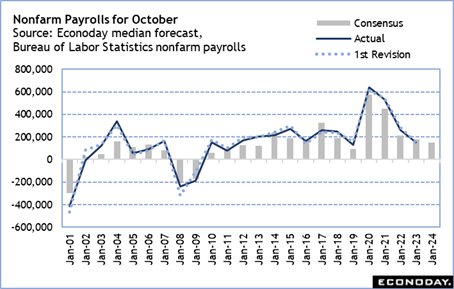 The monthly employment report is at 8:30 ET on Friday. Early forecasts look for about a 150,000 rise in payrolls for October. There are two special factors that might lead to a surprise.