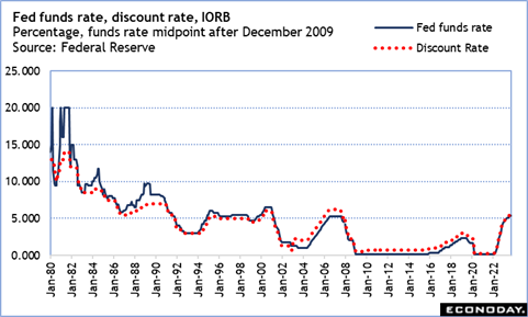 The big question in the October 30 week is whether the FOMC will hold the fed funds target rate range at 5.25-5.50 percent for the second meeting in a row. The present crop of economic data and anecdotal evidence is expected to result in no change in rates after the October 31-November 1 meeting. A resilient US economy grew 4.9 percent in the third quarter. If the labor market reflects slower hiring activity, it also shows few signs of an acceleration in layoffs. Inflation was less improved in the September reports, but at least some of that is due to rising gasoline costs which are now moderating quickly. Tightening in financial markets is doing some of the FOMC’s work in making credit conditions more restrictive. Last week Fed Chair Jerome Powell noted that he thinks there are “meaningful” impacts from past rate hikes still to manifest in the data.