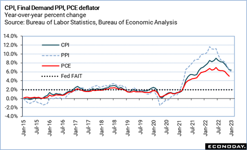 The second estimate of fourth quarter 2022 GDP is set for release at 8:30 ET on Thursday. Early forecasts suggest that little revision is expected from the up 2.9 percent in the advance estimate. As the end of February approaches, the first quarter 2023 is nearly 2/3 gone. The GDP Nowcasts tell two different stories. As of February 16, the Atlantia Fed’s GDPNow looks for growth at up 2.5 percent, while the St. Louis Fed Real GDP Nowcast is at down 1.10 percent as of February 17. An average of the two is for growth of up 0.7 percent. It is too early to put too much stock in either forecast with significant amounts of January and early March data yet to be reported.