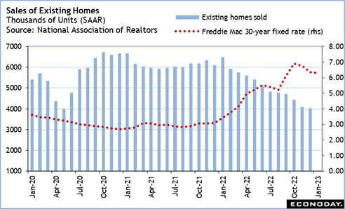 Among the economic data, sales of existing homes in January at 10:00 ET on Tuesday and new single-family home sales at 10:00 ET on Friday that could prove the most interesting. Declines in mortgage rates in December and early January may have sparked some homebuying. Affordability was slightly better and the market favored buyers who could qualify for mortgages. Overall home sales are weaker than a year ago when there was a rush to lock in rates before the Fed pushed rates up enough to seriously affect home affordability. Rates are starting to rise again. As a result, January and early February may be borrowing some sales for the spring months.
