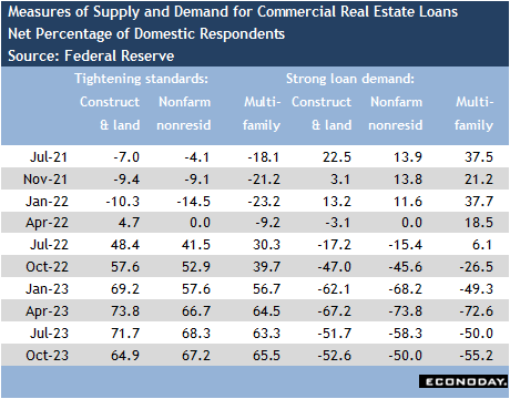 The Fed recently announced that its bank term funding program would cease issuing new loans as planned on March 11 and that the discount window would take up the slack if banks experience liquidity problems after that. This strongly suggests that Fed policymakers view the conditions that led to the collapse of Silicon Valley Bank in March 2023 are now considered as handled in terms of supervision and regulation. At the last FOMC meeting, policymakers got a look at the January Senior Loan Officer Opinion Survey of Bank Lending. It will be released to the public at 14:00 ET on Monday, February 5. The survey provides a lot of information about banks’ standards and terms for lending, and how much borrowing demand is present from both businesses and households. Of particular concern is conditions in the commercial real estate sector that fared poorly during the pandemic and afterward with changes in how much office space businesses need and due to the contraction in brick-and-mortar retail activity. The survey could include some special questions on this topic or other fundamentals in the credit market at most restrictive monetary policy in 18 years.