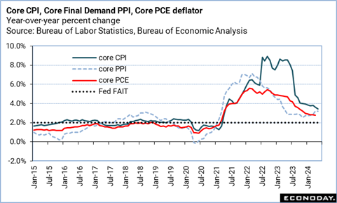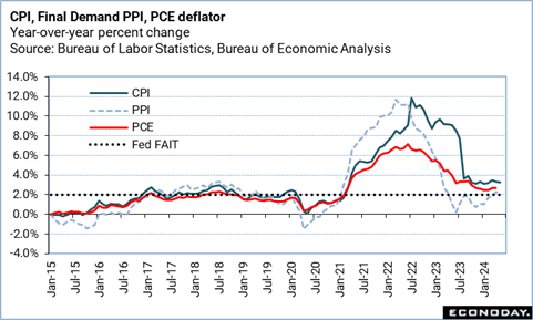 There isn’t much in the way of labor market data during the week, but there is a major inflation report. The PCE deflator for May – part of the report on personal income and spending on Friday at 8:30 ET – could shape market expectations for the timing of a rate cut. Financial markets have not exactly ignored the hawkish tone of comments from Fed policymakers, but do seem to be convinced that the resumption of a mild disinflationary trend will mean that the FOMC will change its tune and cut rates a bit sooner than the current rhetoric would suggest. Policymakers are data-dependent and looking for more than one or two months of minor dips in the inflation measures before shifting the stance of monetary policy.