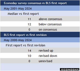 The monthly employment report for May is set for release at 8:30 ET on Friday. The change in nonfarm payrolls will be watched carefully to see if it disappoints or not versus market expectations. In April, nonfarm payrolls rose 175,000, a significant slowing from the first-quarter’s monthly average of 269,000. However, April’s increase reflects a healthy pace of hiring for an economy in modest expansion. Forecasts for May suggest that the upcoming report is expected to deliver a similar number of job gains as in April. If so, the cooling in the labor market would be much as Fed policymakers have anticipated as conditions rebalance and normalize.