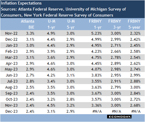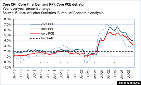 The outlook for Fed monetary policy in 2024 is being shaped in large part by the inflation data and by inflation expectations for consumers and businesses. The challenge facing the FOMC is correctly interpreting the inflation data while navigating the inevitable bumps in the road ahead. It is this challenge that has policymakers looking past the improvements in the all-times measures of inflation to the core – excluding food and energy – readings.