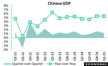 China’s GDP rose 1.2 percent on the quarter in the three months to March, moderating from growth of 1.6 percent in the three months to December, with year-over-year growth unchanged at 5.4 percent. Monthly activity data also published today showed stronger growth in key activity indicators but another substantial decline in house prices.