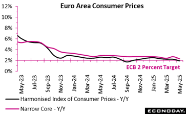 Euro area inflation eased to 1.9 percent in May 2025, falling below the European Central Bank’s 2 percent target for the first time in several months. This deceleration from April’s 2.2 percent suggests growing price stability across key sectors. However, the underlying story reveals nuanced dynamics. While food, alcohol, and tobacco inflation increased slightly to 3.3 percent, likely reflecting ongoing supply-side pressures, the more significant decline was in services inflation, which fell sharply to 3.2 percent from 4.0 percent in April.