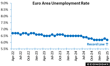 Unemployment in the euro area continued its downward trend in April 2025, with the overall rate falling to 6.2 percent, the lowest over a year. Eurostat’s data reveals a reduction of 207,000 unemployed individuals since March and 343,000 compared to April 2024, suggesting a steadily improving labour market. This progress reflects gradual economic resilience, possibly supported by stabilising inflation and sectoral recovery.