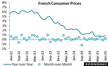 After declining in May by 0.1, French consumer prices are seen rising 0.3 percent in June, driven higher by increased prices for services and higher petroleum product prices, likely from the events in the middle east.