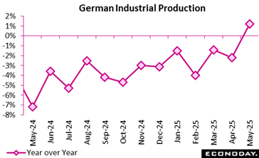 Germany’s manufacturing sector showed signs of resilience in May 2025, with production rebounding by 1.2 percent compared to April, reversing the revised 1.6 percent decline seen the previous month. Year-over-year, production was 1.2 percent higher. The surge was driven largely by the automotive industry (4.9 percent) and a remarkable boost in energy production (10.8 percent), while pharmaceuticals also contributed strongly with a 10.0 percent rise. However, the construction sector dragged on overall growth with a 3.9 percent drop.