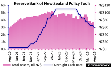 The Reserve Bank of New Zealand’s Monetary Policy Committee has reduced the official cash rate by 50 basis points to 2.50 percent, a bigger cut than the consensus forecast for a reduction of 25 basis points. Officials have lowered policy rates by a cumulative 300 basis points over their previous nine meetings after an extended period of restrictive policy settings.