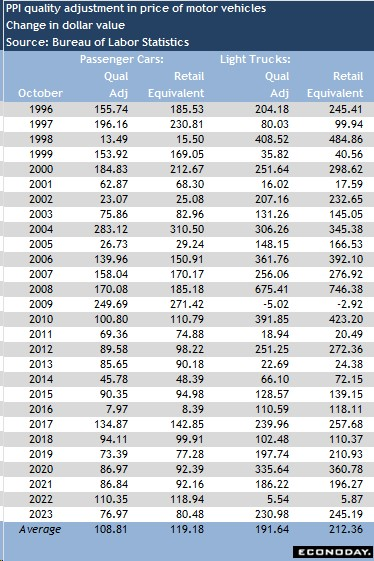 Each year in November in conjunction with the release of the October producer price index, the Bureau of Labor Statistics releases a report on the dollar value of quality changes for motor vehicle models in the upcoming model year.
