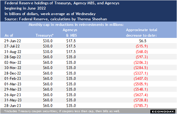 It was on May 4, 2022 that the FOMC announced its plan to reduce the size of the balance sheet. For the June-August 2022 period the program would begin with monthly caps of $30.0 billion in US treasuries and $17.5 billion in agency mortgage-backed securities, then in September rise to $60.0 billion and $35.0 billion, respectively. The FOMC has stuck to this plan since its announcement. Fed Chair Jerome Powell has repeatedly signaled that for the time being the FOMC has no intention of changing this steady, predictable path of reductions.