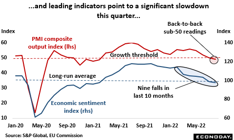 Not surprisingly then, the EU Commission’s closely watched measure of Eurozone economic sentiment has continued to fall and in August posted its worst reading since January 2021 in the midst of the Omicron wave. In a similar vein, the August PMI composite output index chalked up its first back-to-back sub-50 outcome since January/February last year. Business confidence is low and consumer sentiment has slumped to levels well below those seen during the global financial crisis. Record and still accelerating inflation is now clearly negatively impacting consumer spending – discretionary retail sales volumes have declined in four of the last five months – and higher interest rates will further erode disposable income and undermine investment plans. As such, the near-term outlook for private sector domestic demand looks decidedly grim.