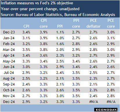 The FOMC will only have the CPI and PPI for December in hand since the PCE deflator for December won’t be reported until Friday, January 31 at 8:30 ET.