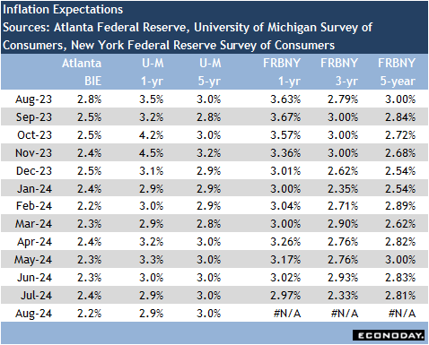 In the countdown to the September 17-18 FOMC meeting, the number of reports that might change the outlook for a rate cut are fewer. As of Friday, August 30, there is less room for a downside surprise in the data on inflation and inflation expectations.