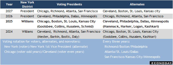The rotation among district bank presidents as voters takes place at the January 28-29, 2025 FOMC meeting. If for some reason the FOMC would need to vote on a rate action prior to then, it will be the 2024 lineup of voters.